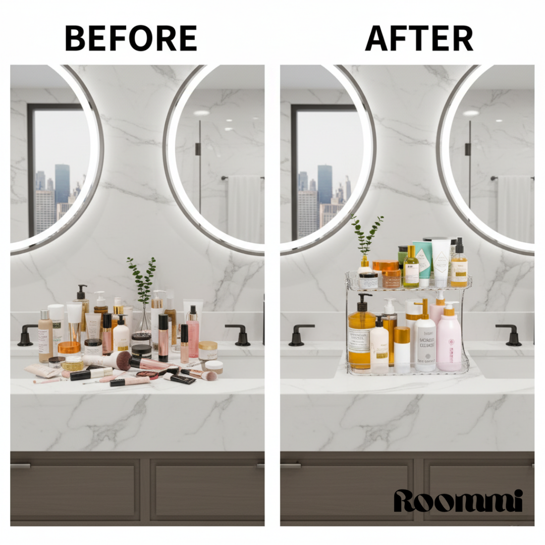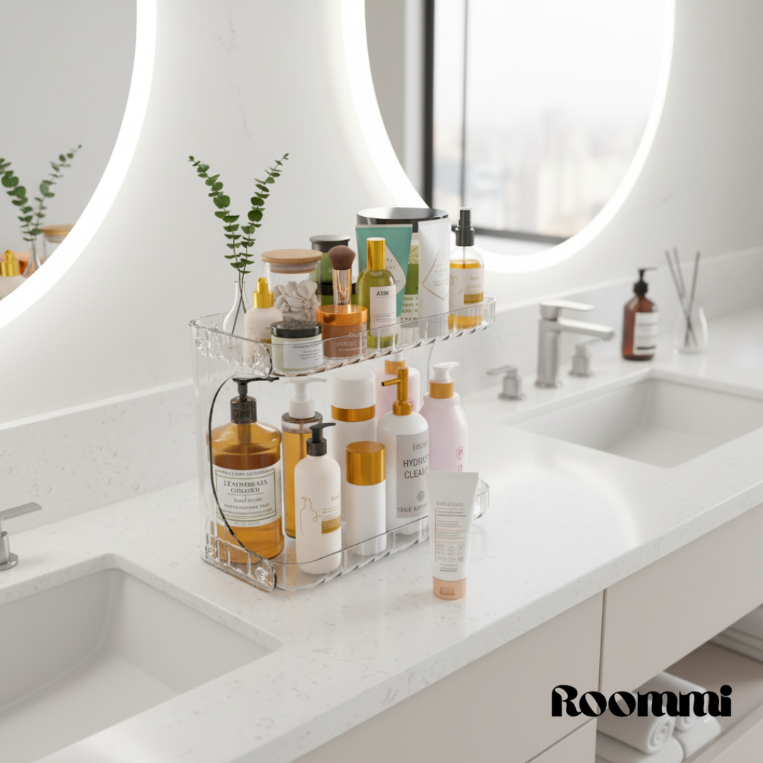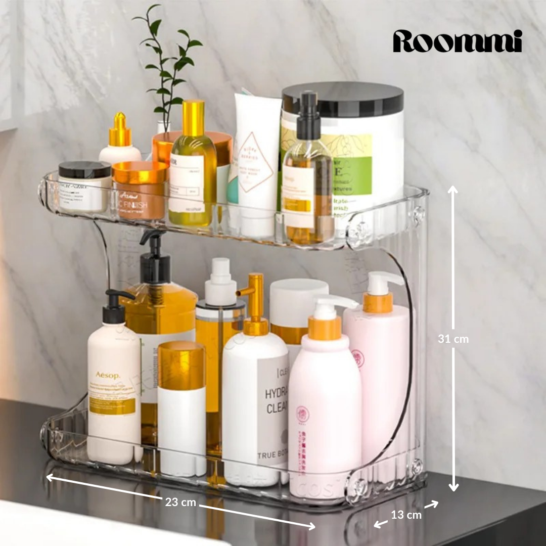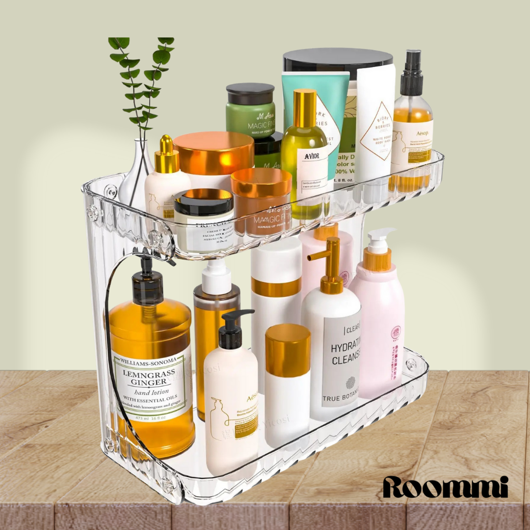Mantén tu espacio ordenado y elegante con nuestro organizador acrílico de doble nivel. Su diseño transparente permite ver todo de un vistazo, aportando practicidad y un toque moderno a tu baño, cocina o tocador. Ideal para perfumes, maquillaje, skincare, especias o accesorios pequeños.